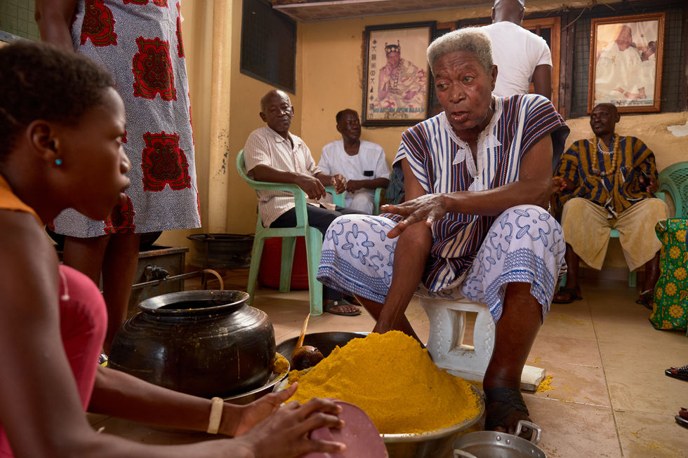 The Homowo festival, rooted in the Ga people's triumph over famine, unfolds as a vivid tapestry of resilience, tradition, and communal spirit. It begins in silence, and the preparation of Kpokpoi, the sacred dish central to the celebration. The silence broken only by the soft rustle of hands sprinkling the food across the town, a poignant act of remembrance for those lost to hunger and time including animals. A reminder of shared suffering and survival.